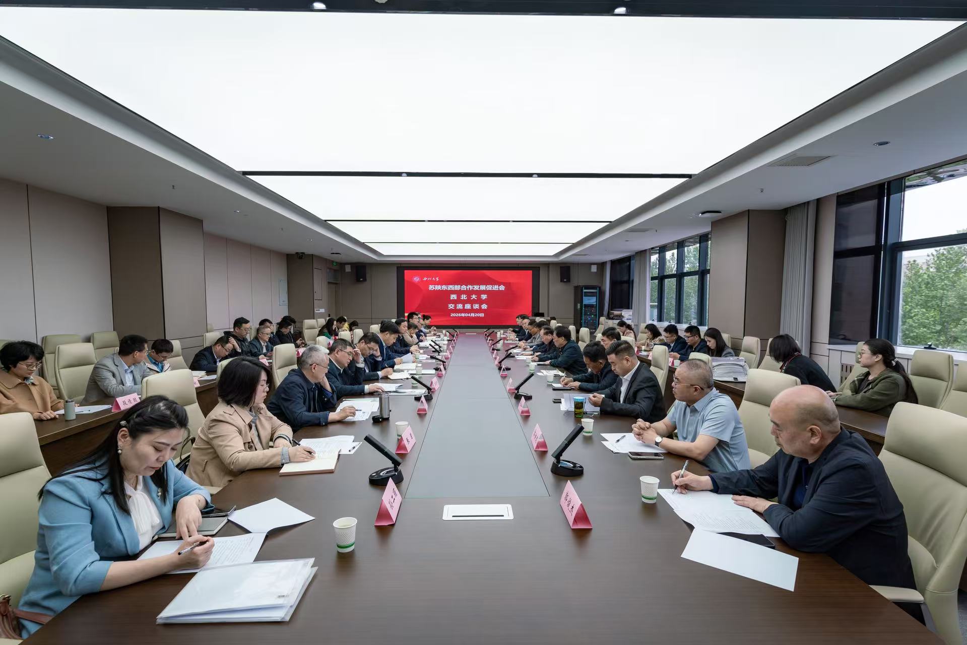 座谈会上,蒋林对刘浩春一行表示热烈欢迎,并介绍了学校事业发展情况。他指出,开展东西部协作是党中央着眼推动区域协调发展、促进共同富裕作出的重大决策。西北大学始终自觉肩负服务国家和区域发展使命,积极搭建合作平台、拓展合作领域。未来,学校将与促进会紧密携手,紧扣国家战略和苏陕两地发展需求,立足各自优势、整合优质资源,在现有合作基础上持续创新合作模式、细化合作举措,凝聚校会协同合力,共同为助力苏陕经济社会高质量发展贡献更大力量。