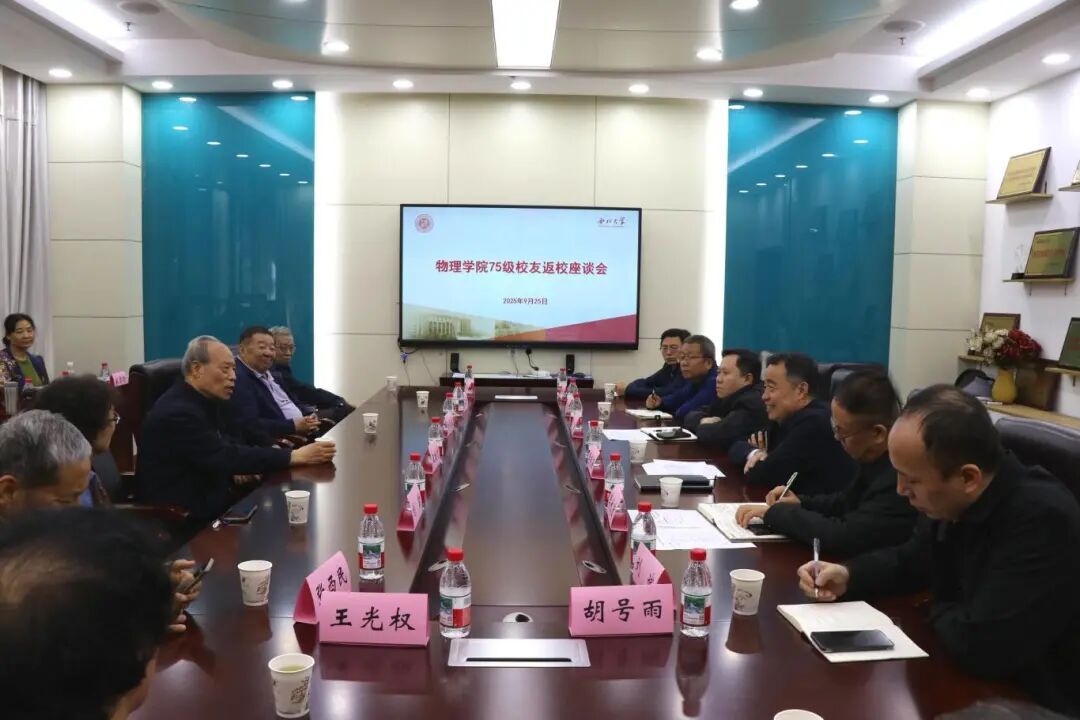 9月25日,我校物理学院1975级半导体专业校友在入校50周年之际重返母校,追忆青春岁月,共叙师生情谊。校党委常委、副校长李振海,时任班主任、西安美术学院原党委书记王栓才,国内处、物理学院负责人参加座谈会。