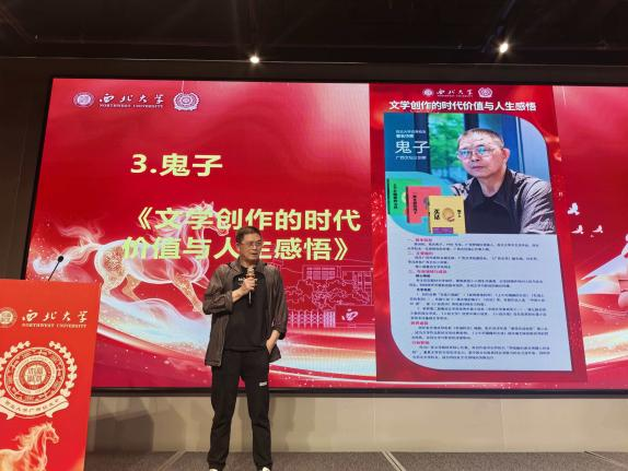 广西作家协会副主席、1987级中文系作家班廖润柏(鬼子)校友以《文学创作的时代价值与人生感悟》为主题,从文学视角出发,分享时代发展中的精神追求与人生思考。